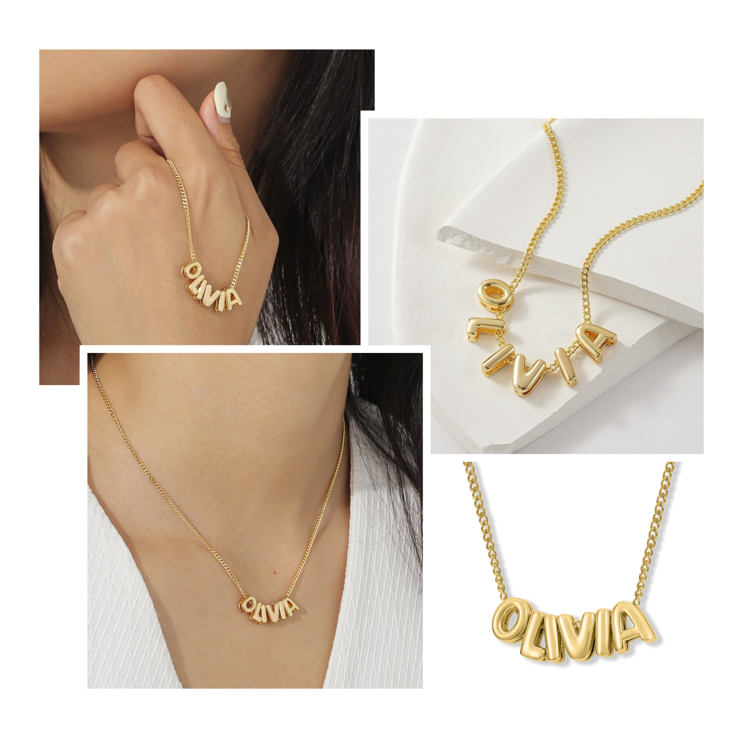 Elevate your everyday style or make a statement on date night with the Bubble Name Necklace. This personalized charm is a must-have for the modern woman who wants to express her individuality and confidence.